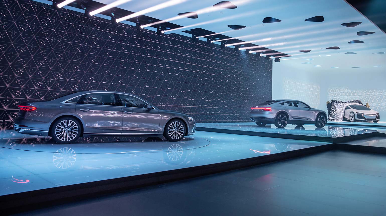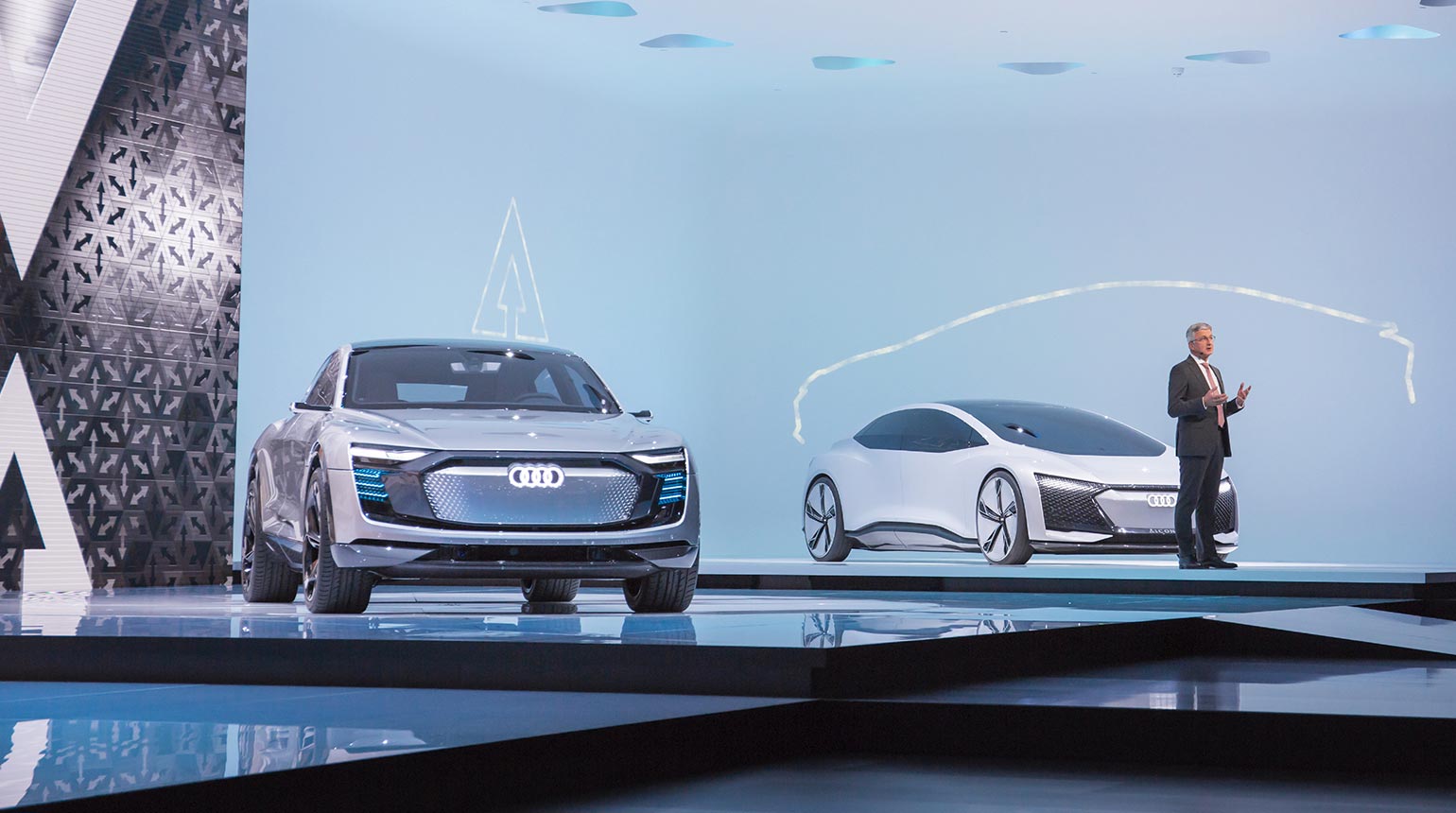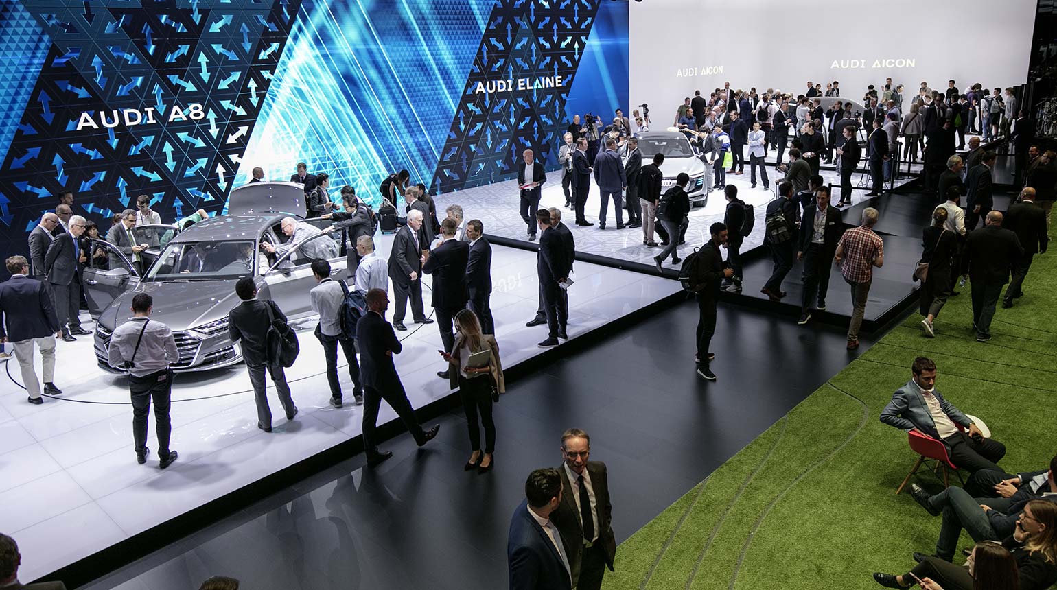Fortschritt in drei Stufen: Auf der IAA 2017 präsentierte Audi seine Zukunfts-Strategie zum autonomen Fahren in Form dreier Premieren: dem Audi A8, dem Audi ELAINE und dem Audi AICON.
