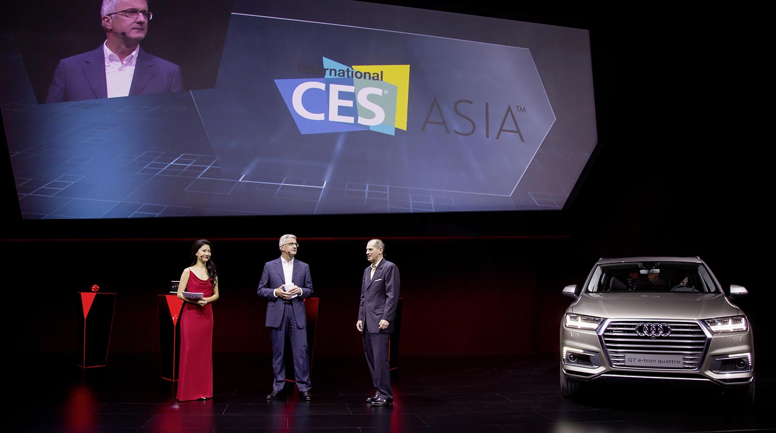 Audi eröffnete mit der Master Keynote die erste International Consumer Electronics Show (CES) Asia. Auf der Messe in Shanghai stellten der Vorstandsvorsitzende Rupert Stadler, Entwicklungschef Prof. Dr. Ulrich Hackenberg sowie Vertriebsvorstand Luca de Meo Innovationen der Elektronik und Megatrends der Mobilität vor. Zusätzlich präsentierte die Marke ein Concept Car.