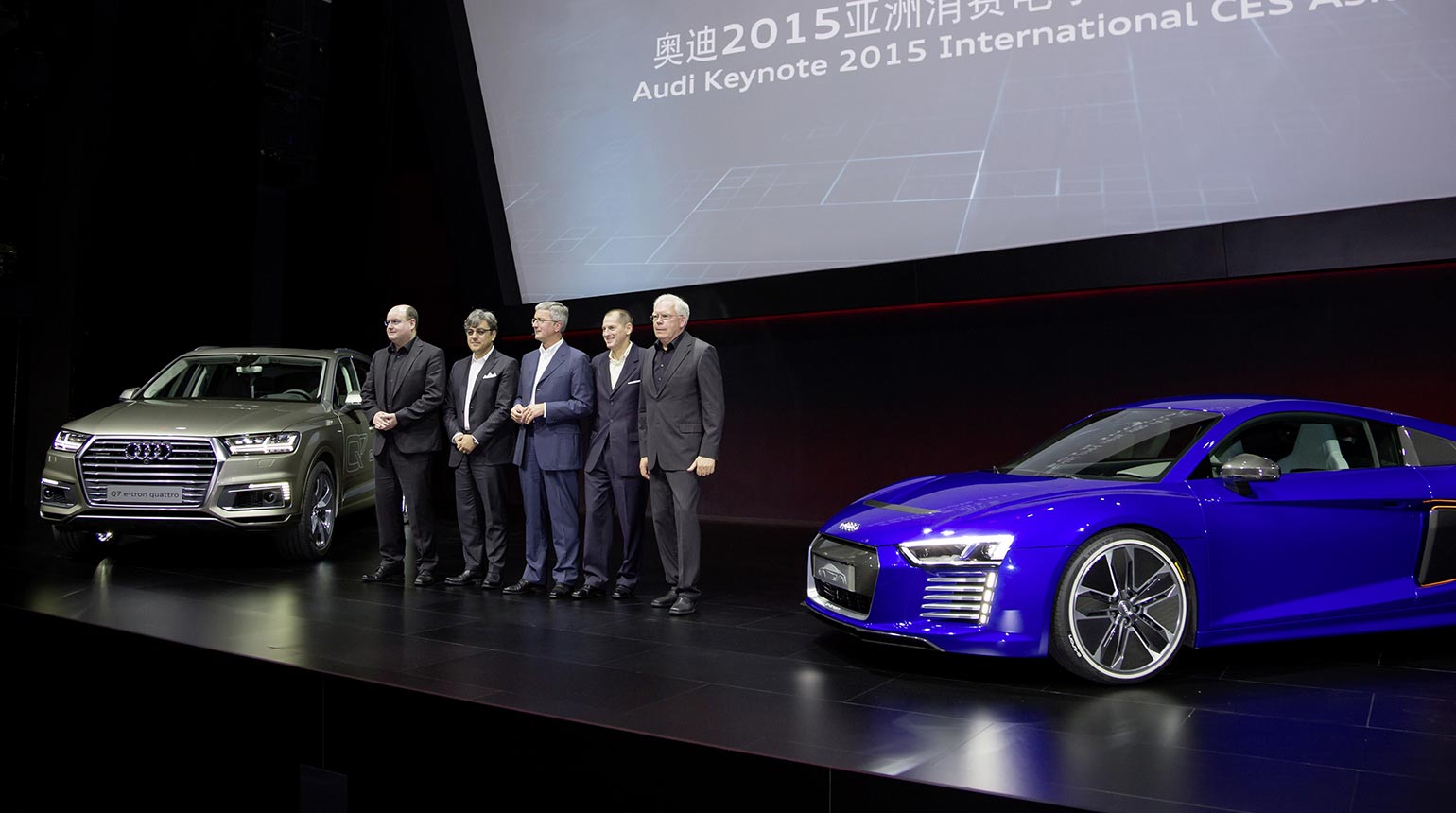 „Die wichtigste Elektronik-Messe der Welt geht zum ersten Mal in den größten Markt für Audi. Es ist für uns selbstverständlich, dass wir hier eine starke Präsenz zeigen“, sagte Rupert Stadler, Vorstandsvorsitzender der AUDI AG. „Denn ebenso wie die asiatischen Märkte spielen Elektroniksysteme für die Zukunft des Automobils eine entscheidende Rolle.“ 2013 eröffnete Audi ein eigenes Entwicklungszentrum in Chinas Hauptstadt. "Die präzise Kenntnis der Gegebenheiten vor Ort ist wichtig, damit unsere technischen Innovationen ein Erfolg auf unserem wichtigsten internationalen Markt werden“, sagt Entwicklungsvorstand Prof. Dr. Ulrich Hackenberg. „Unsere Ingenieure in China arbeiten unter anderem an der Abstimmung von Fahrwerk, Assistenzsystemen und Bedienoberflächen sowie an der Lokalisierung von Hochvoltbatterie-Komponenten.“ Darüber hinaus entwickelt Audi in Peking asienspezifische Infotainment- und Connectivity-Features.
