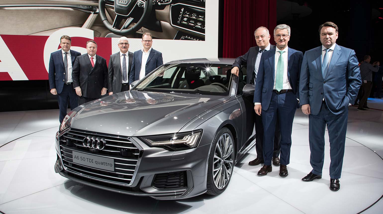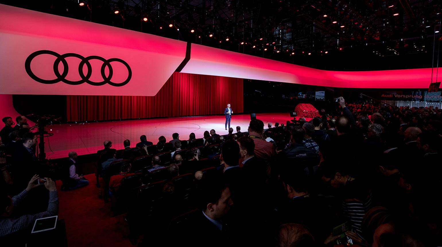 Nach dem neuen A8 und dem neuen A7 setzte Audi mit der Pressekonferenz in Genf seine Modell-Offensive in der Oberklasse fort. Außerdem enthüllte Audi in Genf erstmals den Prototyp seines ersten rein elektrisch angetriebenen Modells, dem Audi e-tron und läutete den Countdown zur Weltpremiere des Fahrzeugs beim Audi Summit Ende August ein.