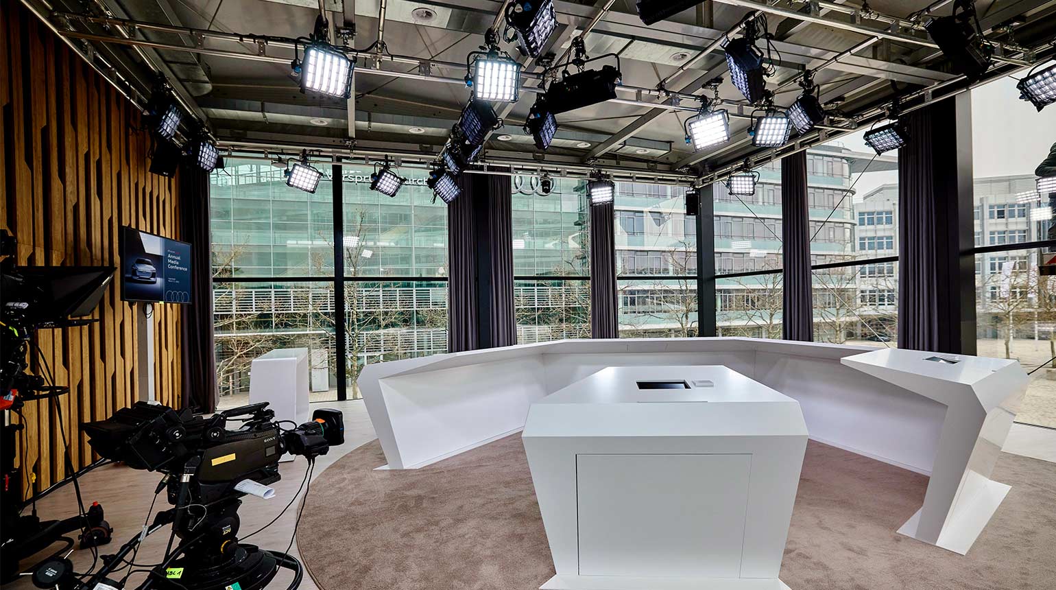 Herzstück des Tages: die Jahrespressekonferenz mit der Vorstellung des Finanzergebnis und einem Ausblick auf die Zukunft des Unternehmens. Dabei standen Austausch und Dialog an erster Stelle. Die Zuschauer hatten die Möglichkeit ihre Fragen über eine Microsite direkt ins Studio zu posten. In kleineren Round Tables konnten die Pressevertreter per Video-Chat mit den Audi Vorständen persönlich sprechen. Und sogar 1:1 Interviews im Anschluss an die Sendung waren möglich.