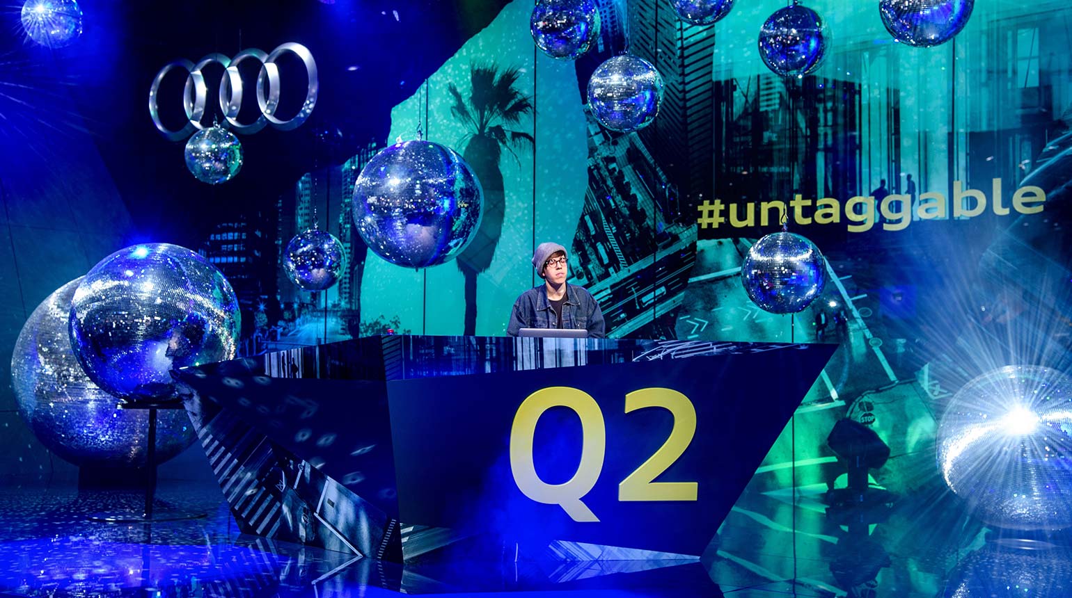 Die Weltpremiere des neuen Audi Q2 wird zum digitalen Abenteuer. Die Idee: der Messestand als digitaler Spielplatz, der die Teilnehmer auf Schritt und Tritt in Bewegung hält, sich ständig neu erfindet und niemals stillsteht. Die ‚Light Robots’ Inszenierung bildet das dramaturgische Highlight. Die Show inszeniert die Welt des Audi Q2 im Stile interaktiver Spielkonsolen. Die Zuschauer erleben, wie sich die Bühnen-Beleuchtung in der Decke in lebendige Wesen verwandelt. Die ‚Light Robots’ machen sich auf die Suche nach dem neuen Audi Q2 und analysieren das neue SUV auf seine Kompatibilität mit der Zielgruppe der Digital Natives. Die Show begeistert nicht nur das Publikum vor Ort, sondern löst weltweit einen imposanten Nachhall und neue Reichweitenrekorde aus. In Zeiten digitaler Spiele-Hypes trifft die Show exakt den Nerv der jungen Zielgruppe und wird hundertausendfach geklickt.
