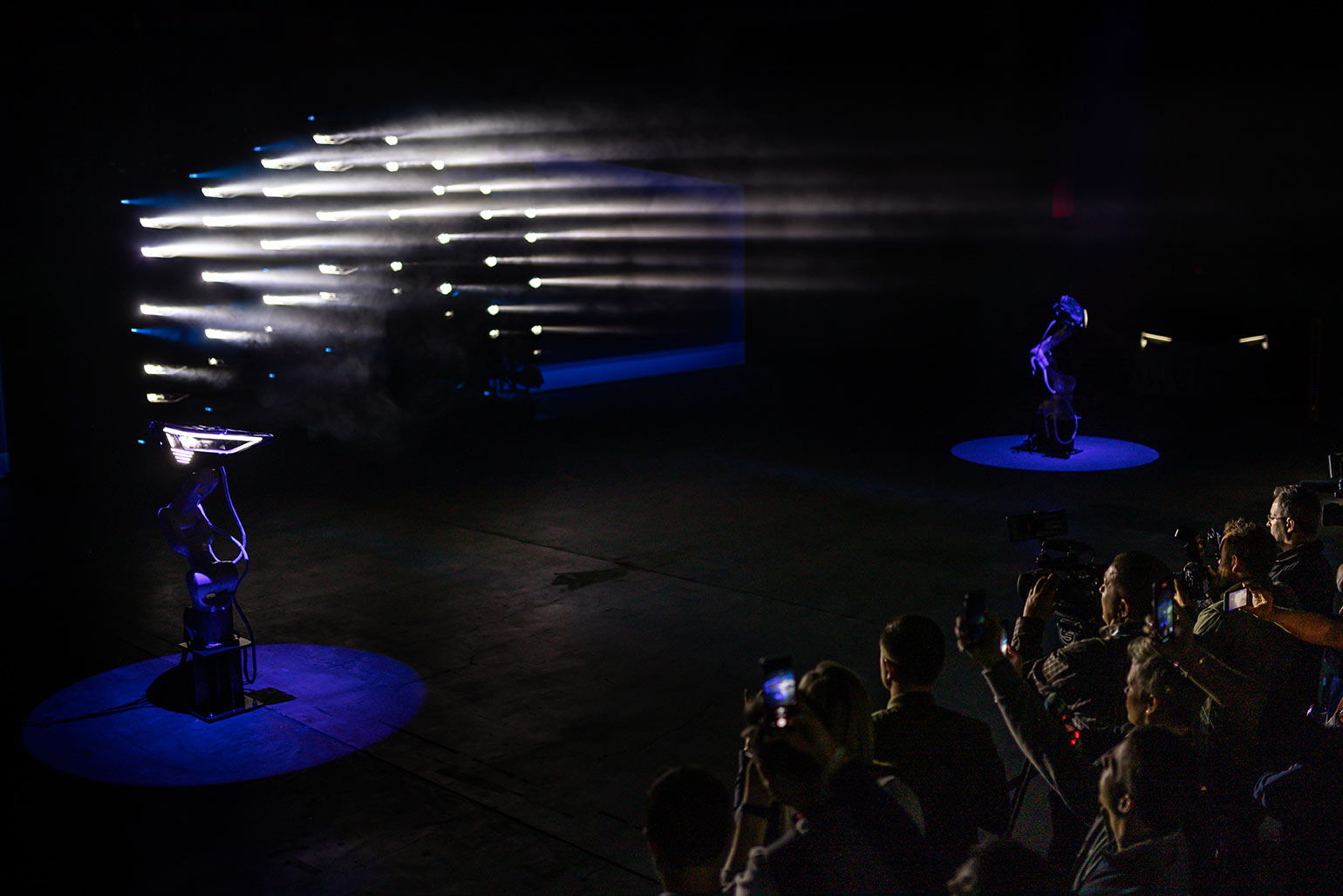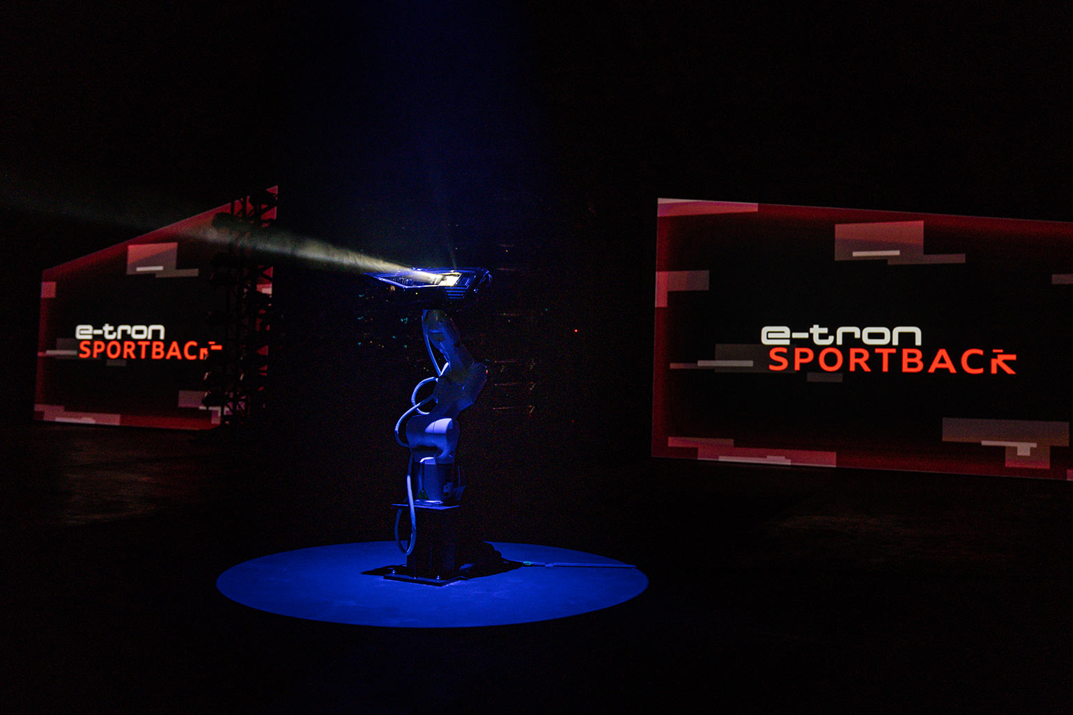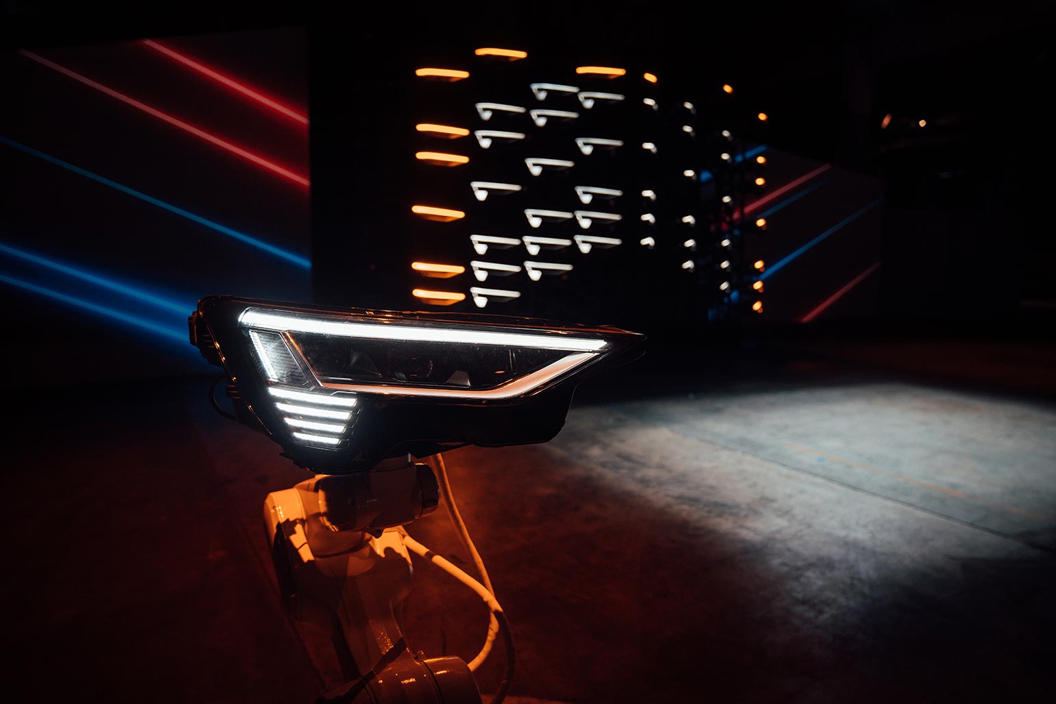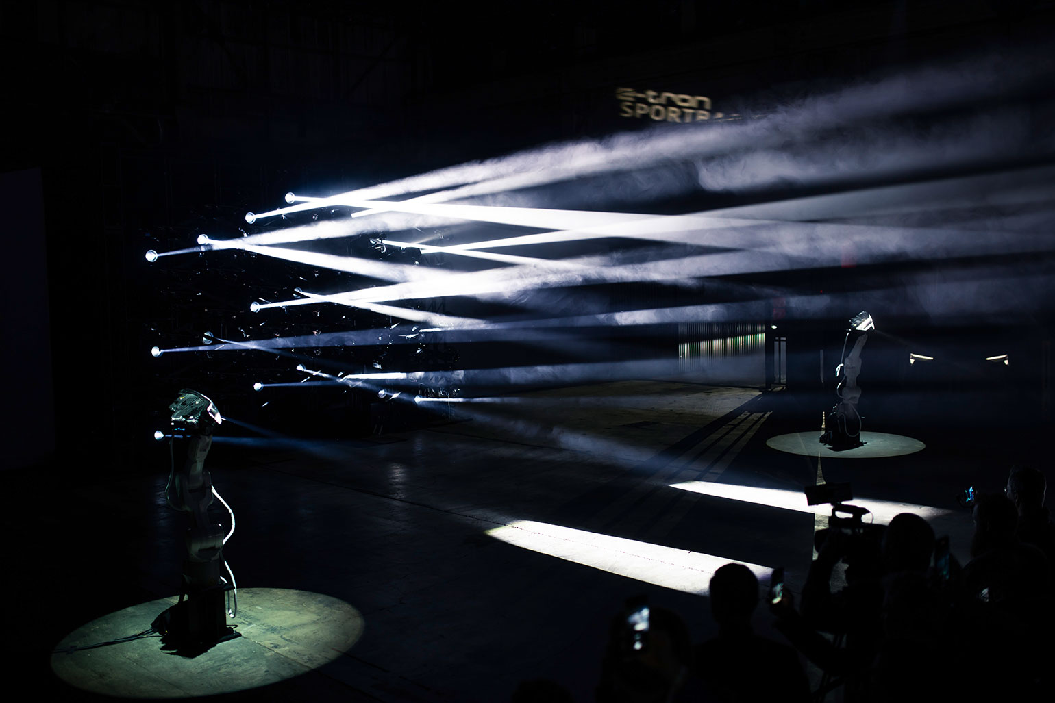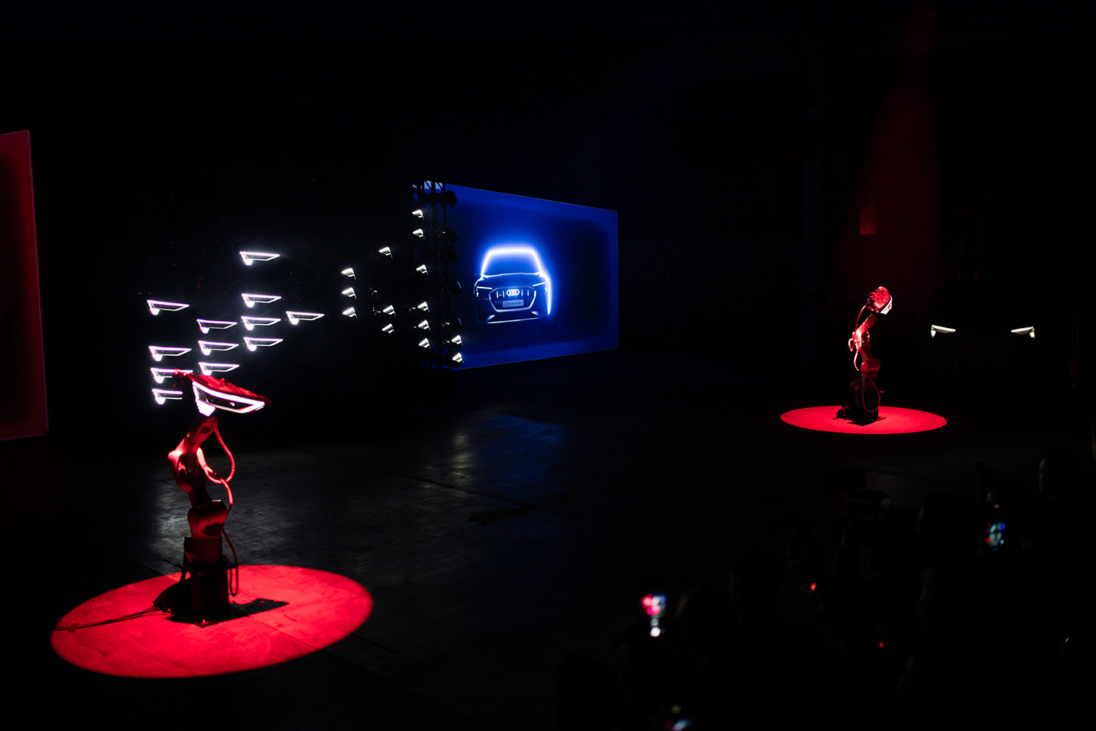 Eine aus 48 e-tron-Scheinwerfern bestehende Rückwand komplettierte die Show-Installation.