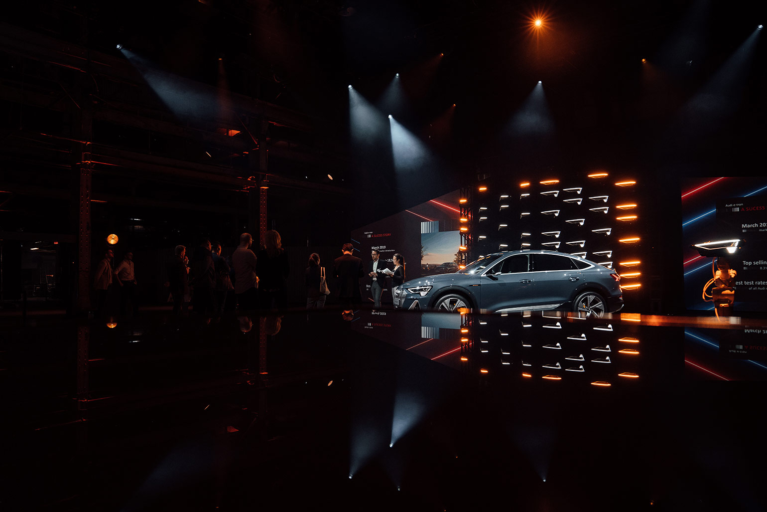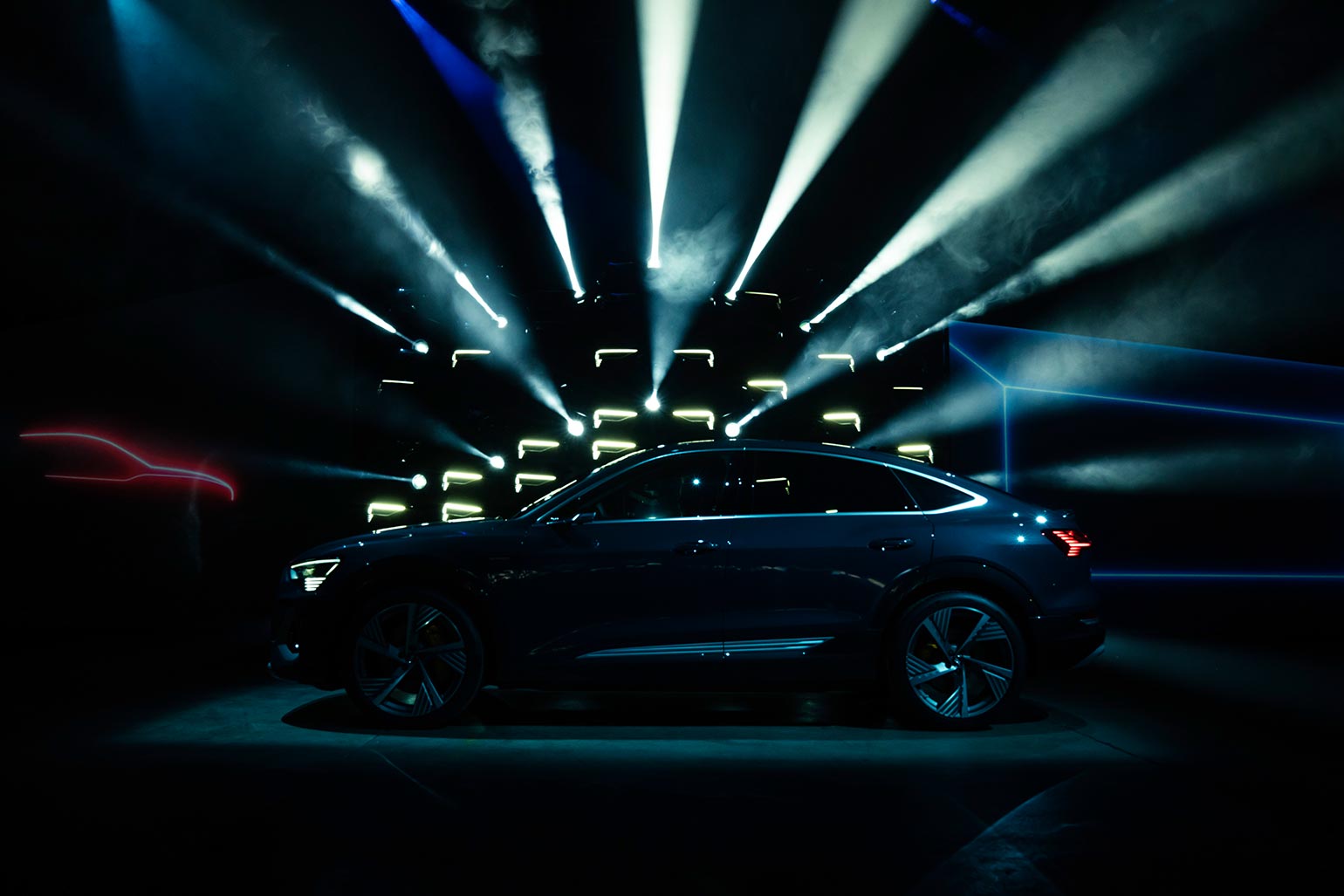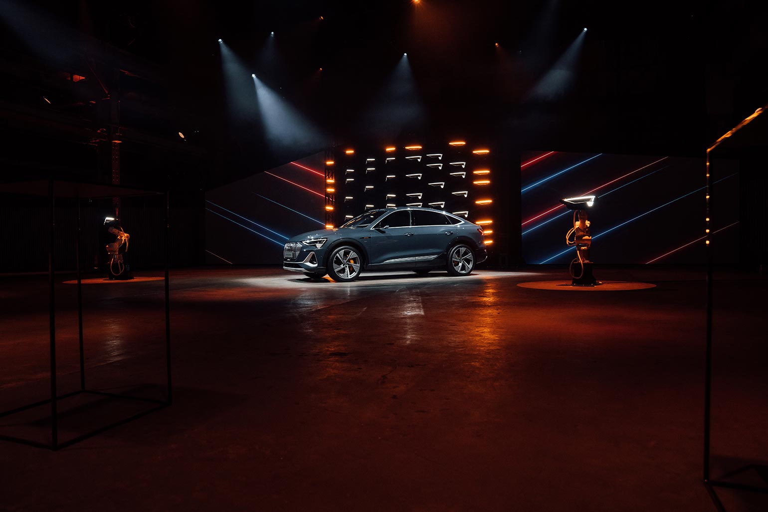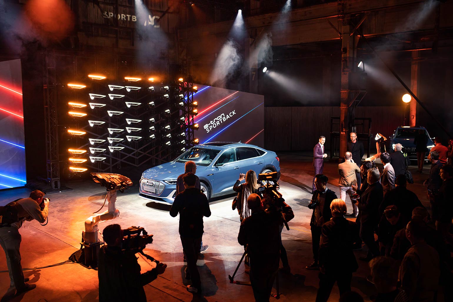 Eine aus 48 e-tron-Scheinwerfern bestehende Rückwand komplettierte die Show-Installation.