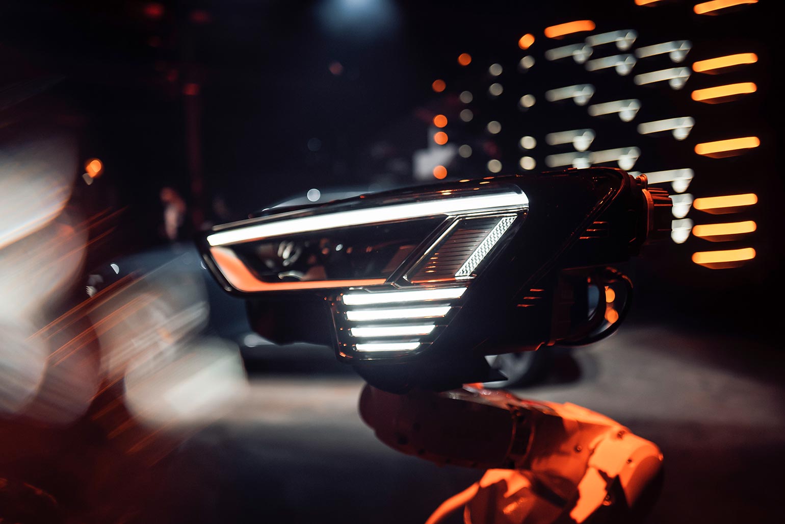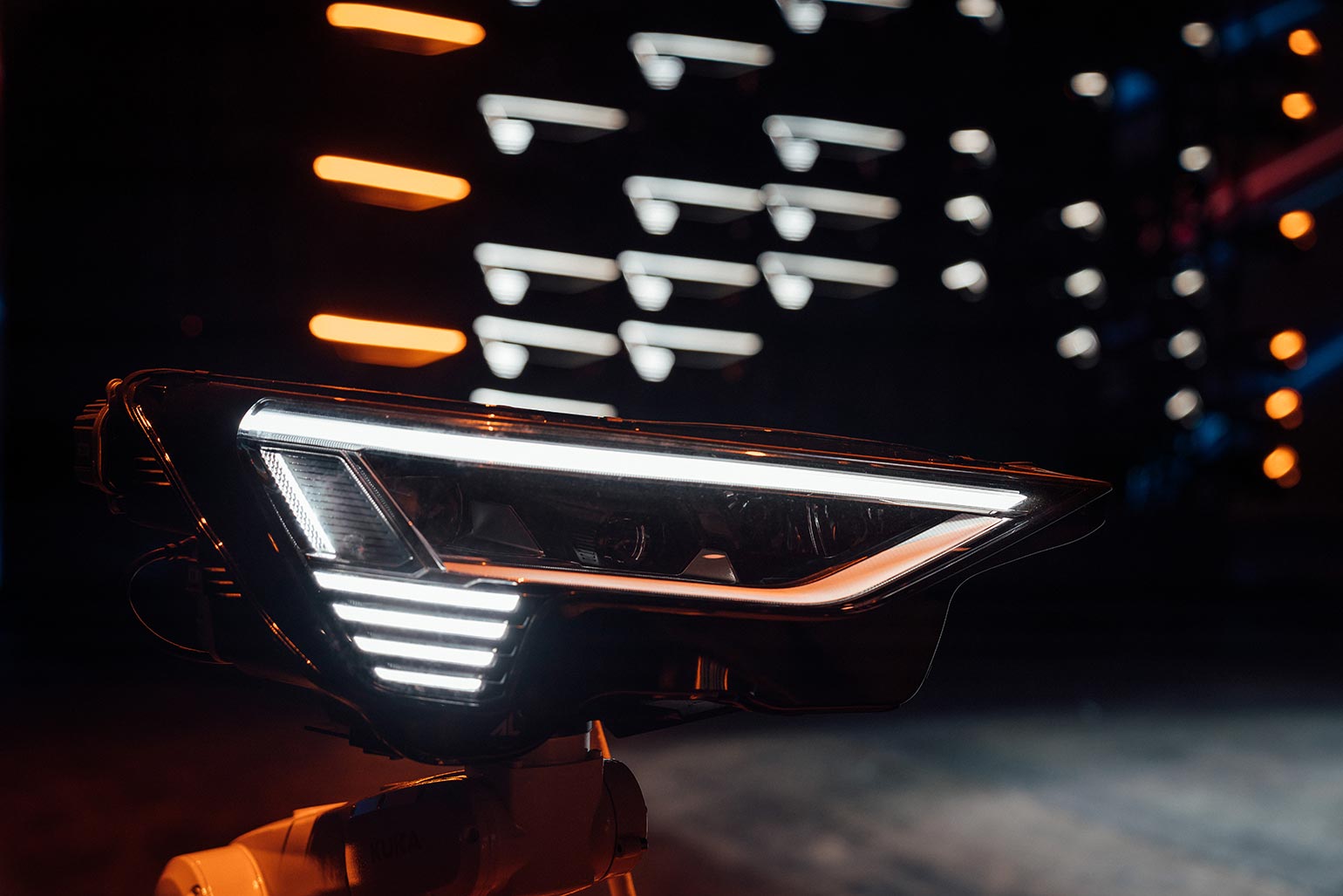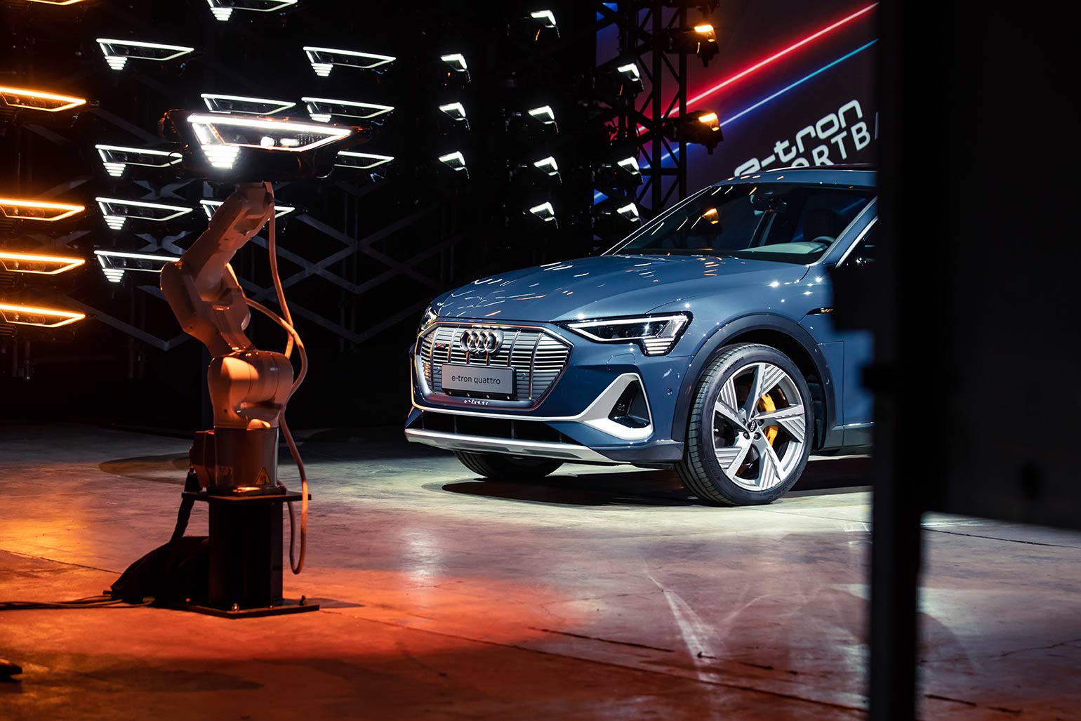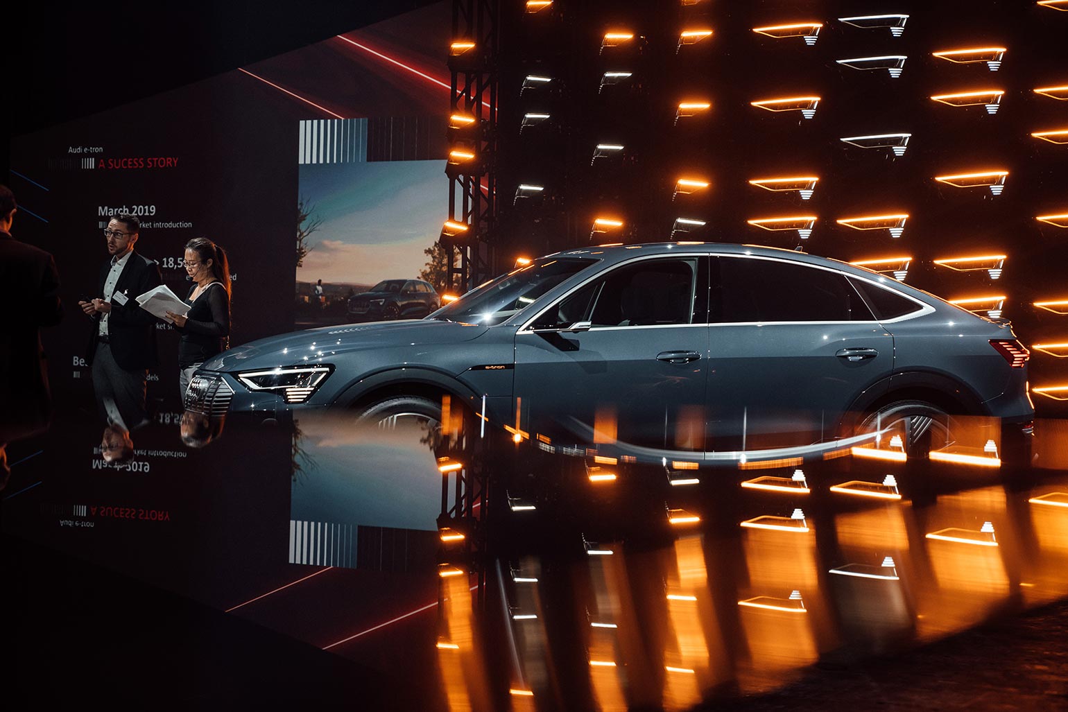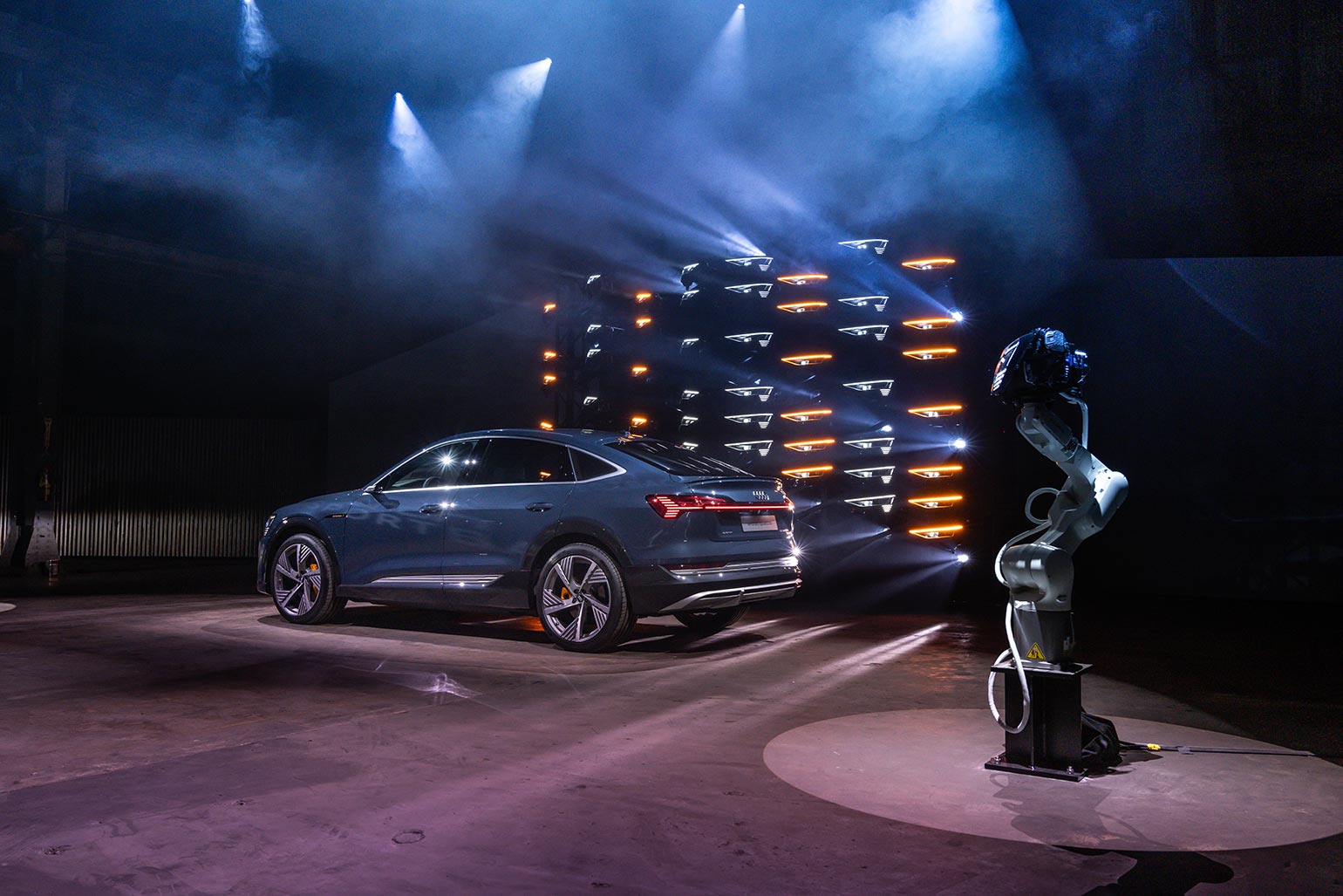 Eine aus 48 e-tron-Scheinwerfern bestehende Rückwand komplettierte die Show-Installation.