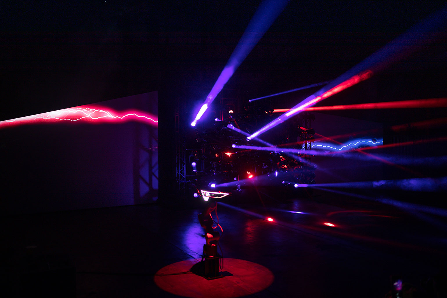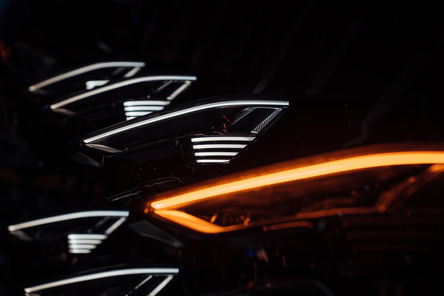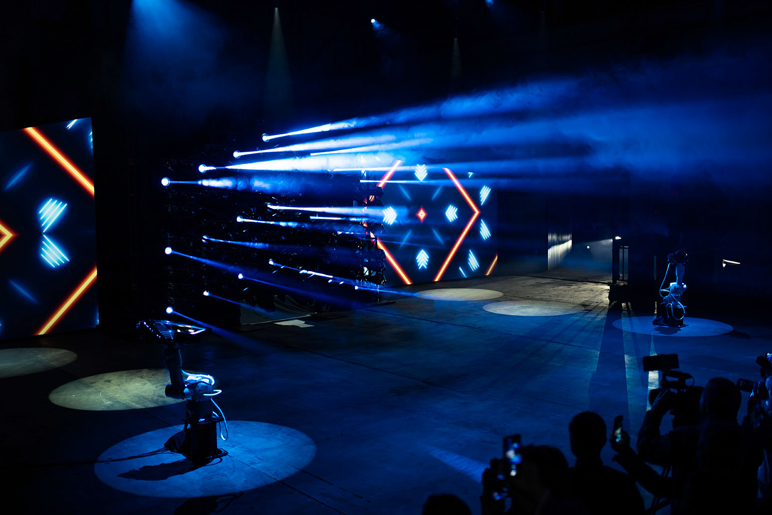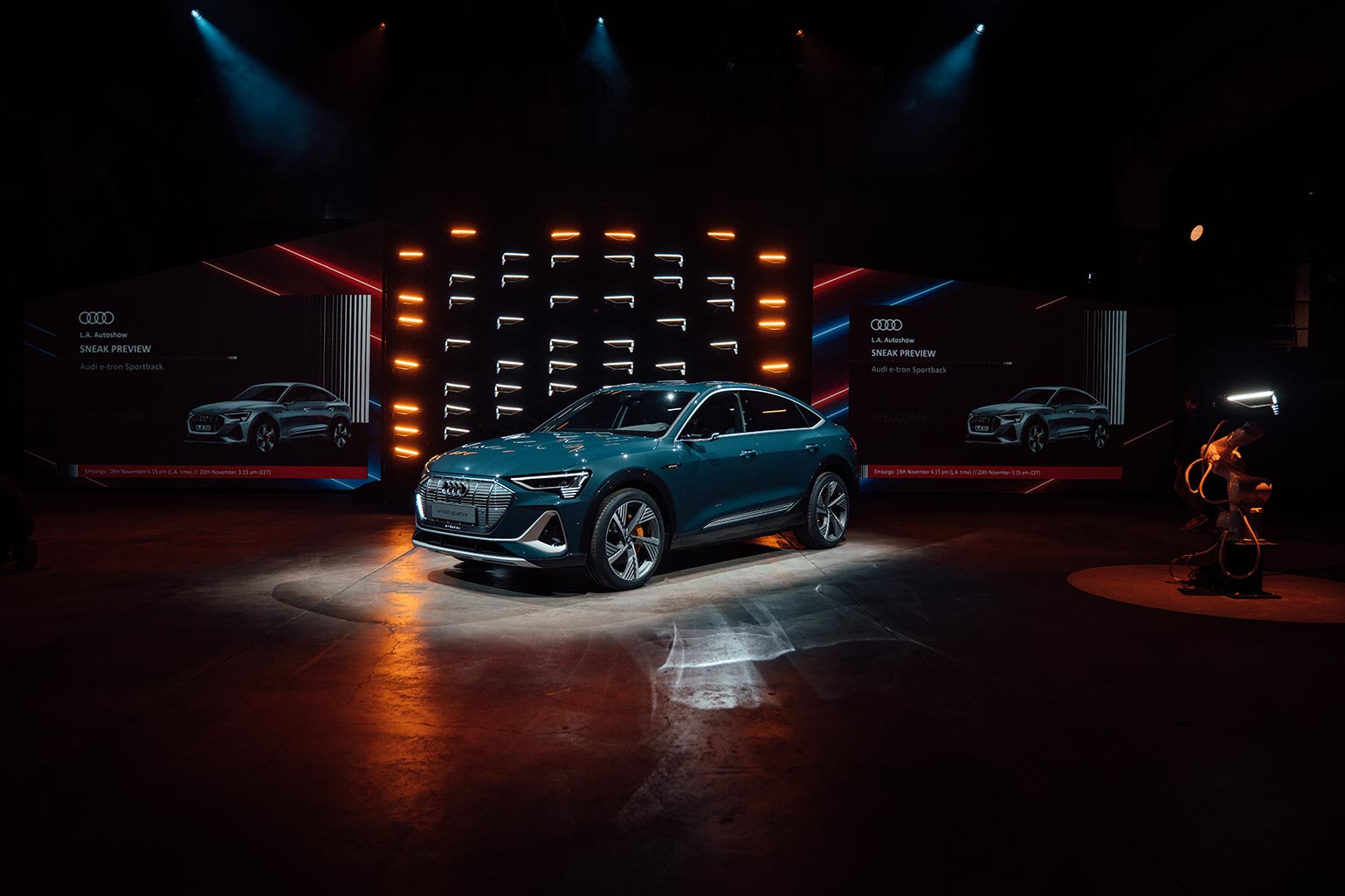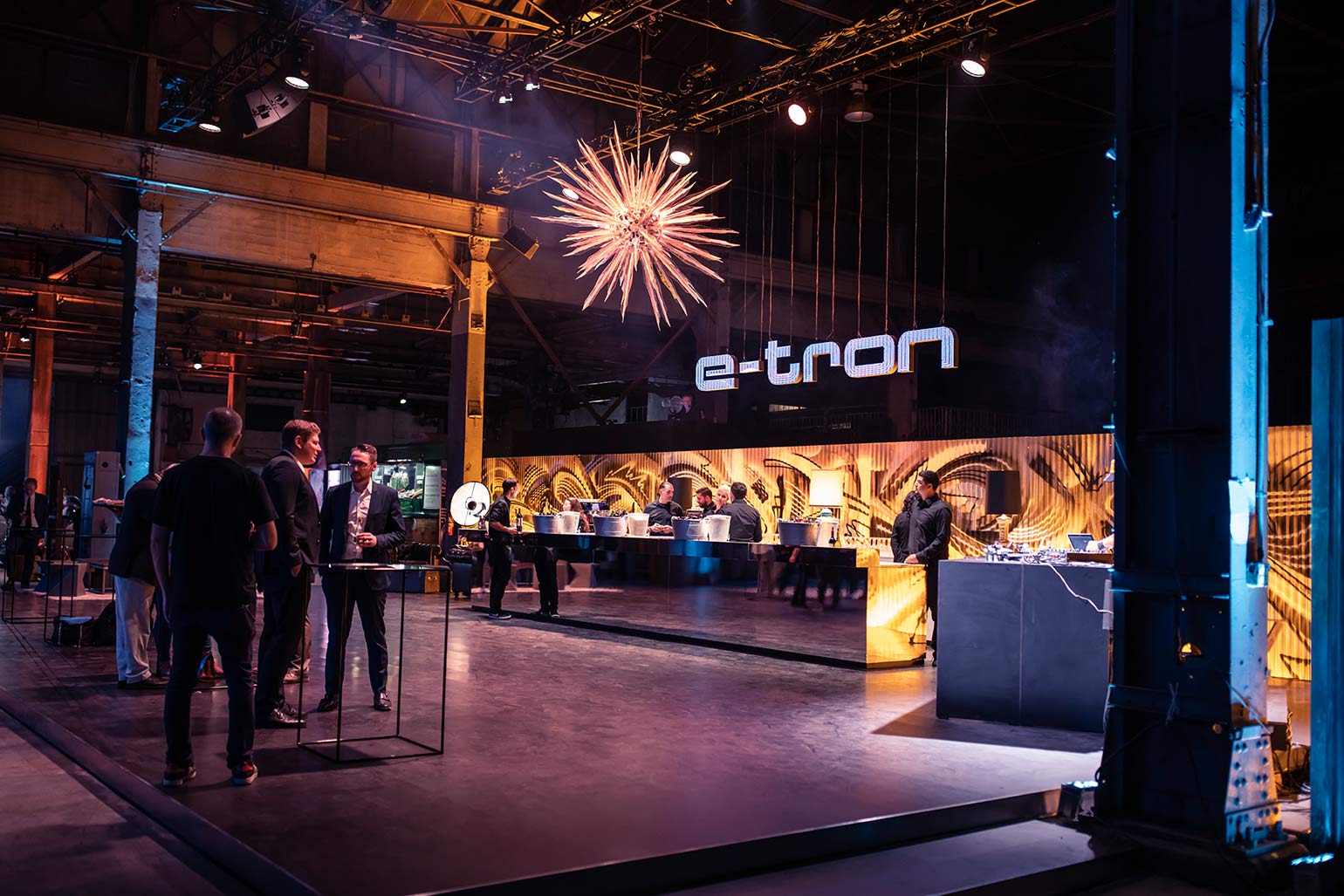 Eine aus 48 e-tron-Scheinwerfern bestehende Rückwand komplettierte die Show-Installation.