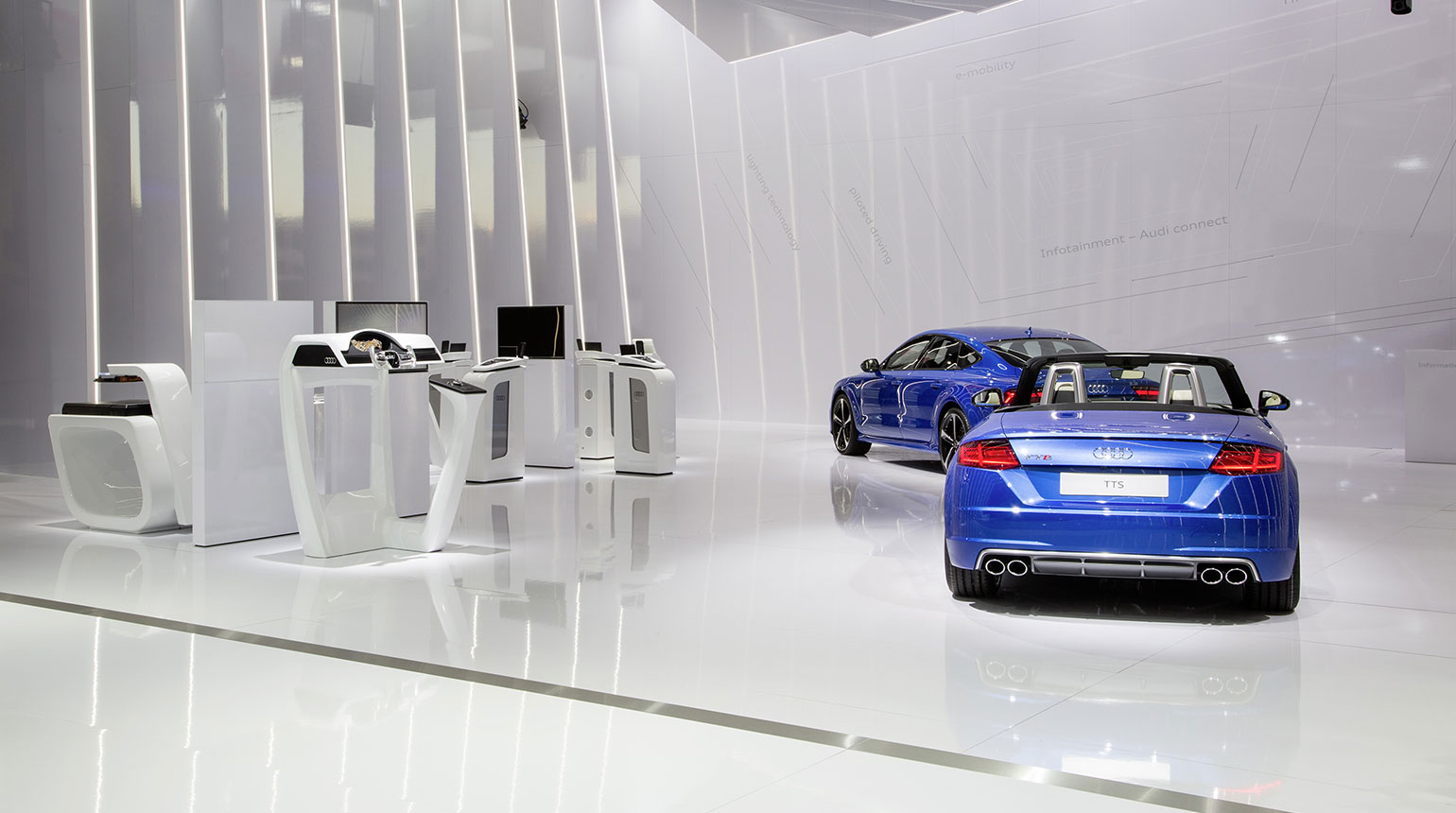 Zu den Highlights auf dem Messestand gehörten das Showcar Audi prologue piloted driving mit Hybridantrieb und das Innenraummodell des neuen Audi Q7.
