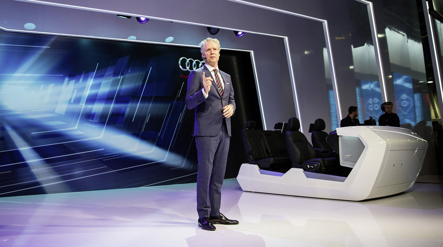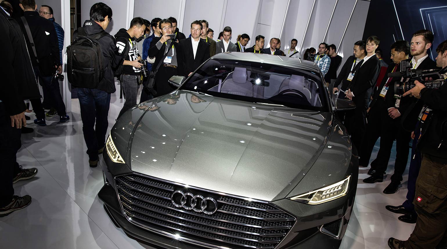 Im Mittelpunkt des CES‑Auftritts von Audi stand die Kommunikation des Autos mit seiner Umwelt. Schwerpunktthemen waren das pilotierte Fahren, die neuen Lösungen von Audi connect, die neuen Infotainment-Bausteine, Bedien- und Anzeigekonzepte und Neuentwicklungen bei der Lichttechnologie.