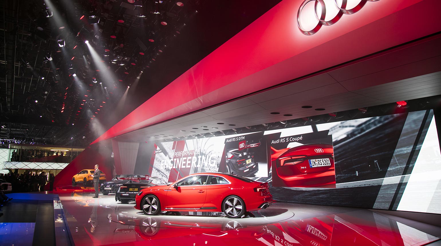 Audi präsentierte auf dem Internationalen Automobilsalon in Genf sechs neue Modelle. Die Highlights der Pressekonferenz bildeten die Weltpremieren des neuen Audi Q8 sport concept und des Audi RS 5 Coupé – der Gran Turismo unter den RS-Modellen. Sein Pendant im Motorsport, der Audi RS 5 DTM, startet mit über 500 PS in die neue Saison.