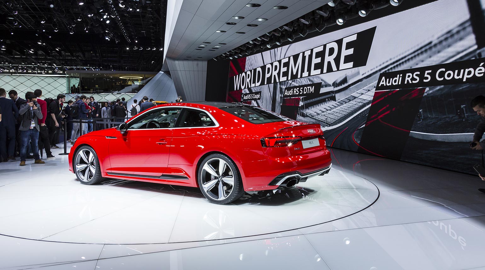 Zwei weitere Messepremieren flankierten den sportlichen Auftritt der Marke: der Audi RS 3 Sportback und der Audi SQ5 TFSI. Mit dem A5 Sportback g-tron zeigte Audi darüber hinaus eines seiner nachhaltigen Antriebskonzepte. Das Erdgas-Auto vereint dynamische Fahrleistung, Alltagstauglichkeit und elegantes Design mit einem CO2-armen Betrieb.